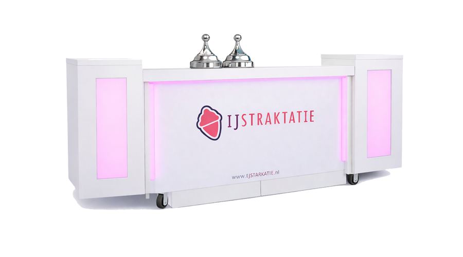 Deze ijsbar met ledverlichting die in elke kleur is in te stellen past perfect bij een gelegenheid in moderne stijl of beurs. Ook logo presentatie mogelijk in het midden van deze bar. Ook een kleinere variant va 140cm lengte en 80cm diepte beschikbaar.